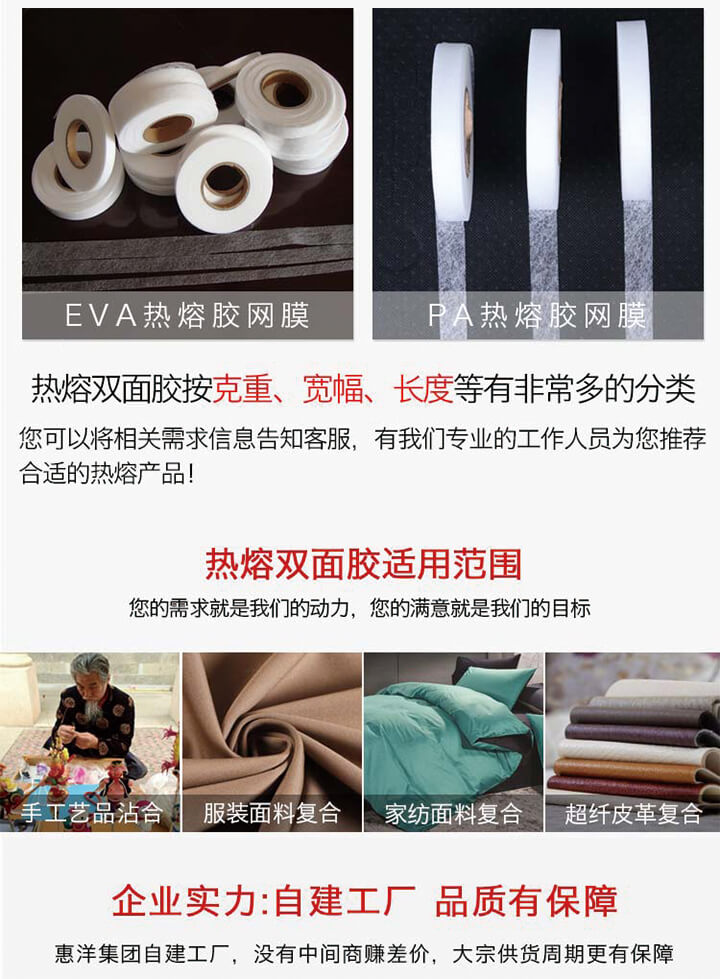 熱熔膠網膜切片又名熱熔雙面粘合襯,廣泛應用于服裝、布料的復合使用。規格齊全,歡迎咨詢工作人員拿樣試用
